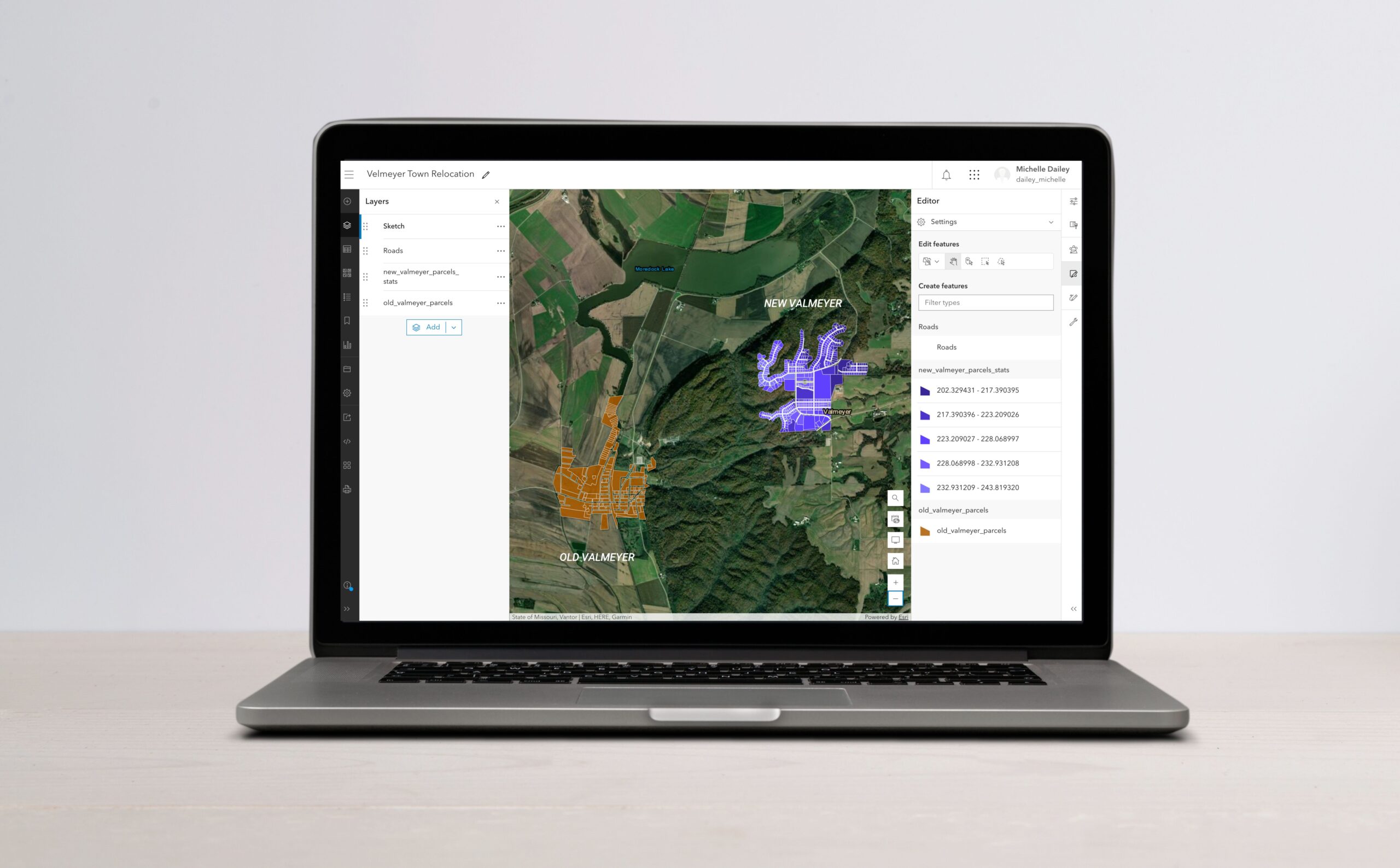 As part of my class on GIS Data Formats, Design, and Quality, I created an online web map to update parcel information and digitize new road layers for the town of Valmeyer, which relocated to higher ground to mitigate flood risks.